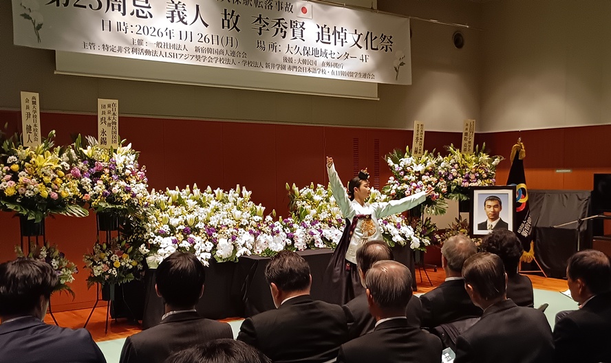 JR新大久保駅で線路に転落した日本人を助けようとして命を落とした韓国人留学生、李秀賢(イ・スヒョン)さん(当時26)の25周忌追悼文化祭が命日の1月26日、東京都新宿区の大久保地域センターで営まれた。四半世紀という節目を迎え、会場には多くの関係者や市民が参列。日韓の架け橋になろうとした青年の勇気と遺志を改めて胸に刻んだ。